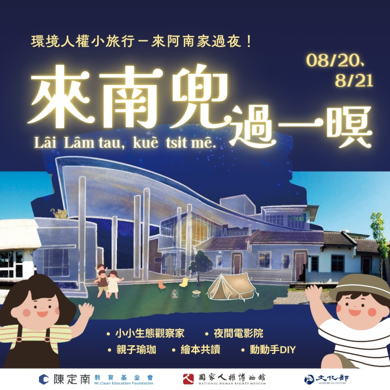 在這段時間裡,我們也持續進行各年齡層的校外教學活動。今年夏天,基金會將推出別具意義的夜宿紀念館親子活動:《來南兜過一暝》,邀請您走進紀念館,在自由的光影中,發現人權在日常生活裡的足跡,尋找屬於每個人的信念與勇氣。